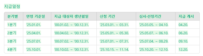 - 매분기 25만 원씩 지급되어 실질적인 생활비 부담 완화